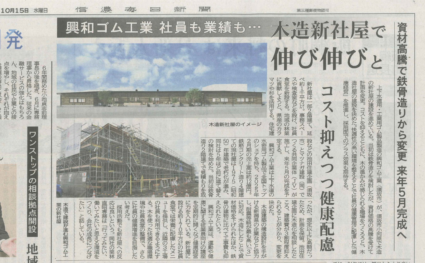 現在工事中の、約1000㎡の木造非住宅物件『興和ゴム工業㈱ 社屋新築工事』が、